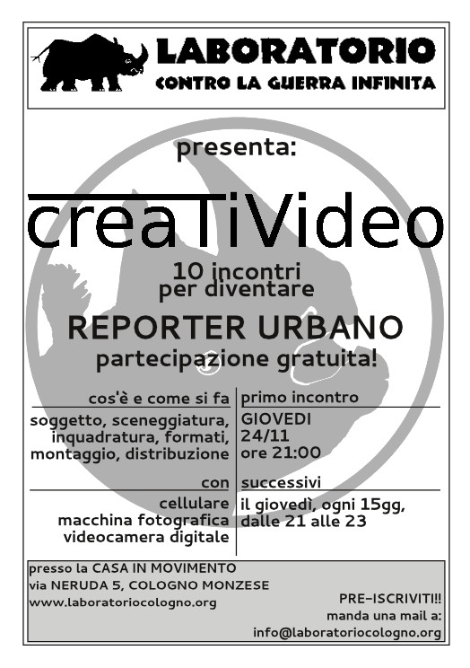 Da novembre 2011 a marzo 2012 la Casa ha ospitato una serie di workshop, come sempre gratuiti, per diventare “reporter urbano”: Creativideo.